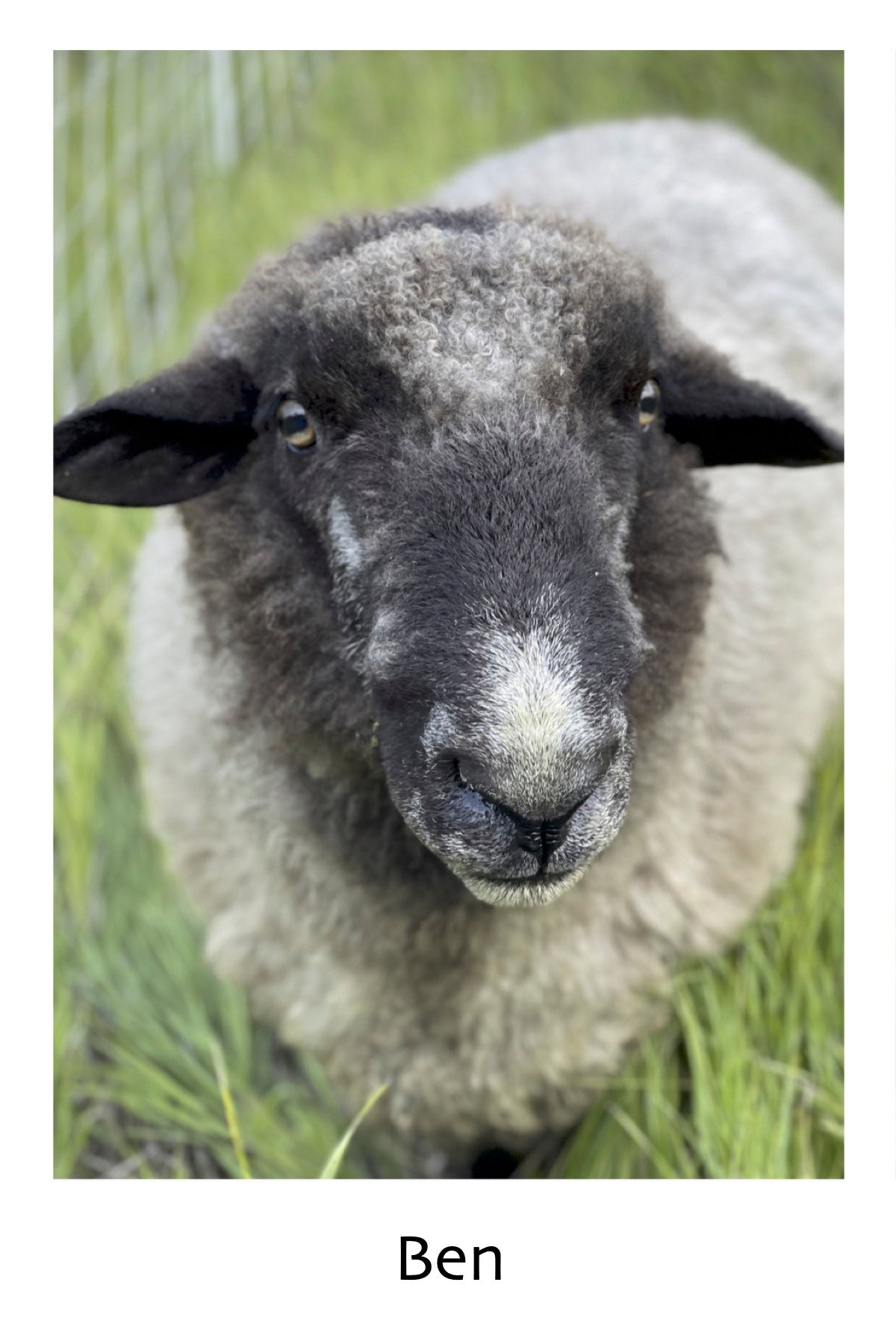 Ben is the first ram I picked out for my flock. I visited half a dozen farms until I found him, and I knew he was the one. Halter trained from his preparation as a show lamb for the Tunbridge World’s Fair, Ben is a gentle, loving soul – though yes, I am careful to watch where he is to make sure he minds his manners. But any more, he simply comes up for a hug, and I get to check the growth progress of his lovely gray fleece. Ben is a Romney cross, with that wavy longwool quality.