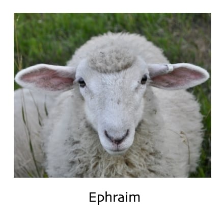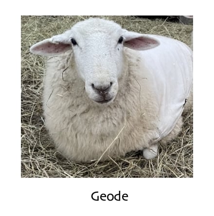 Ephraim (4) and Geode (2) are full siblings from Ben and Pearl. Pearl is the sheep who started it all. Though I miss her friendship since her death last spring, many of her lambs are still with me. Geode gives me a doubletake sometimes since she looks so much like her. Both Ephraim and Geode have her wide horizontal ears. (Photo of Ephraim is a baby picture!)